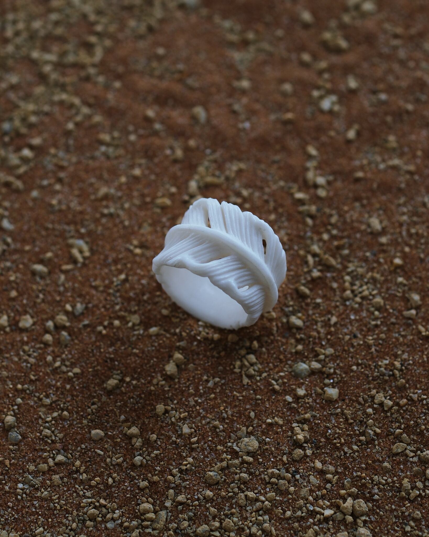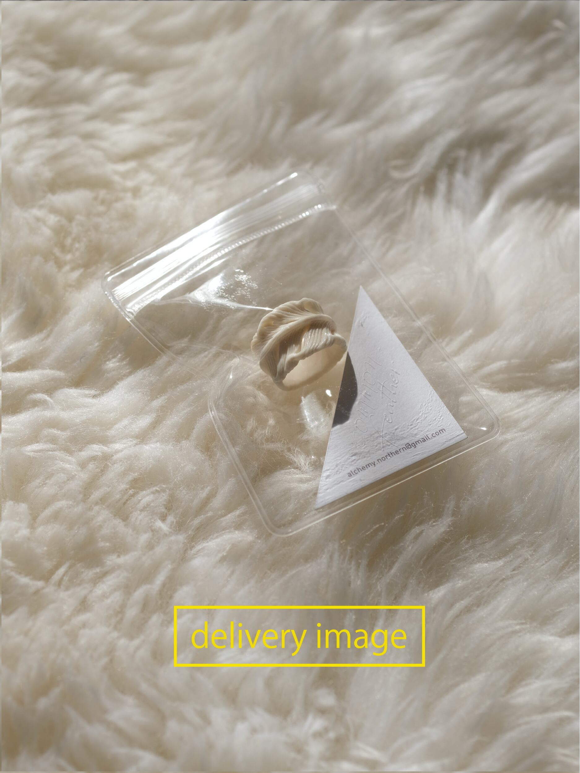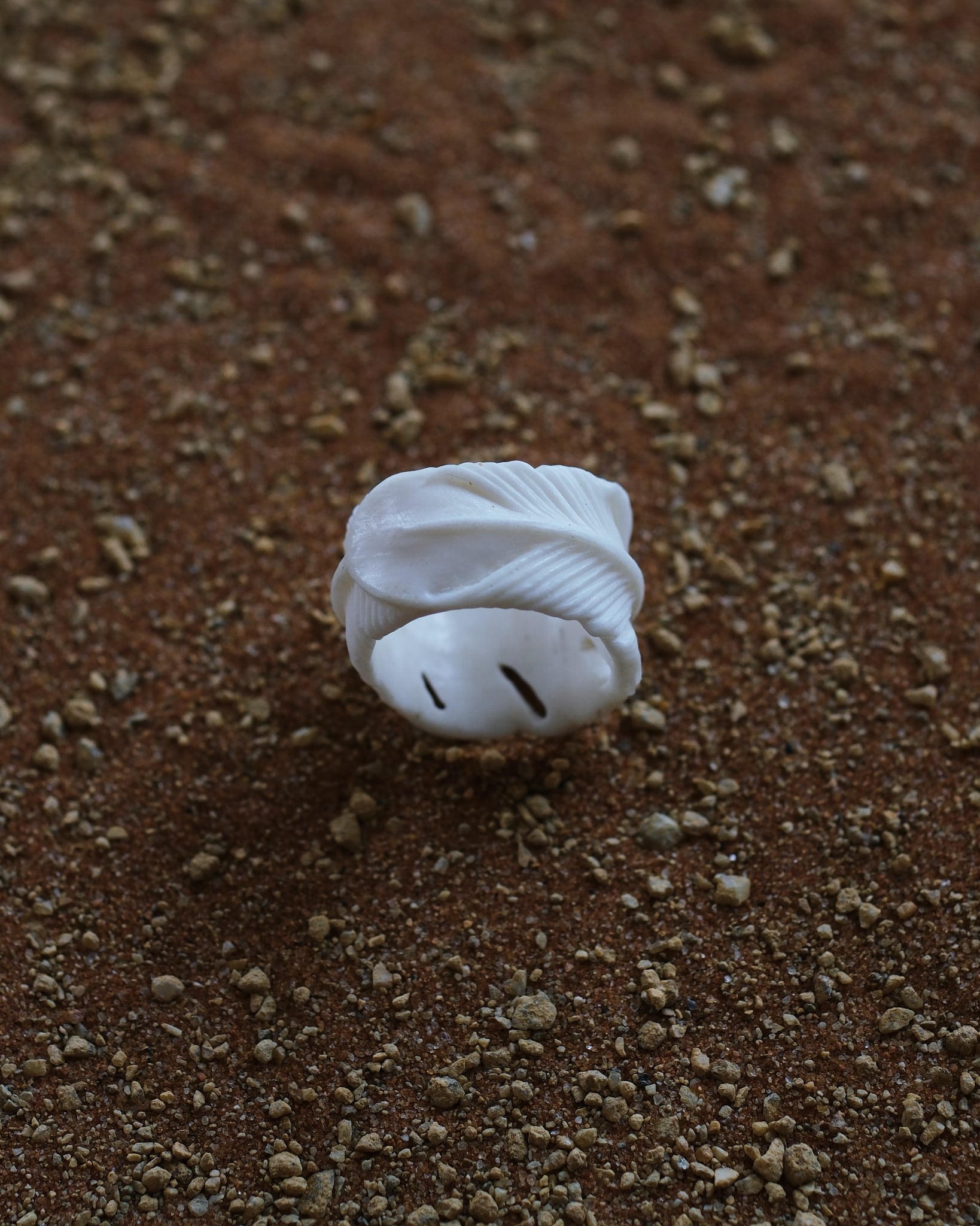 手作業で削り出したフェザーを指輪に。素材は北海道のエゾシカの角。その中でも色や密度の良い物を選りすぐっています。金属とは違った優しいつけ心地です。