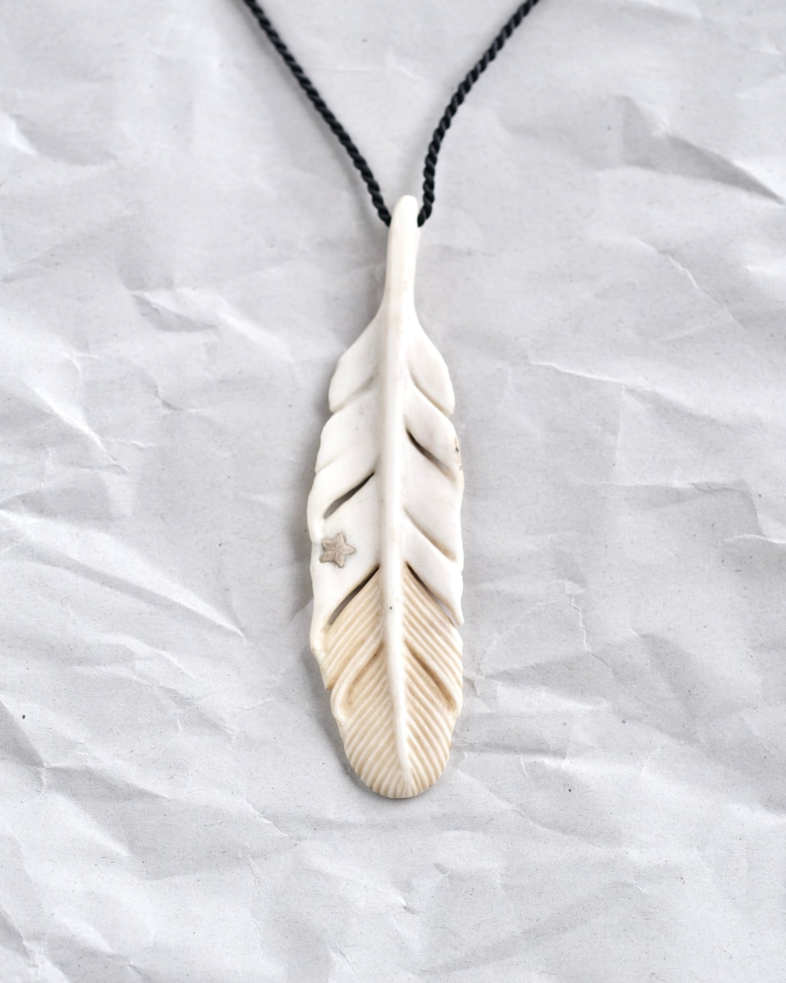 Hand-carved antler pendant from Hokkaido, Japan.